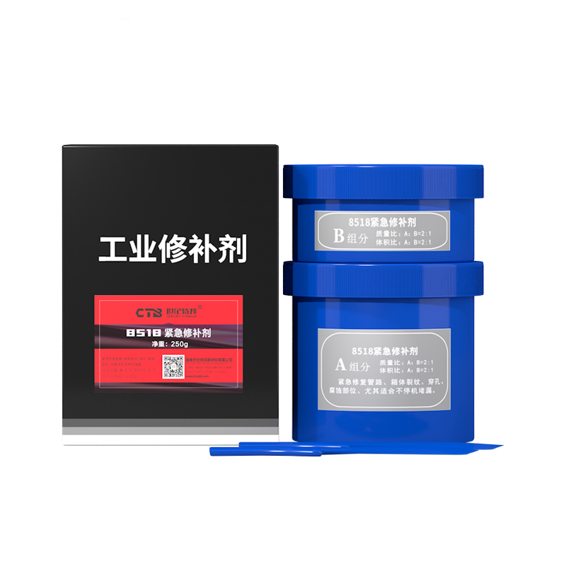 是由改性增韌樹脂和快速固化劑組成的雙組分修補(bǔ)材料,灰色膏狀,固化快,表面處理要求低與各種金屬及無(wú)機(jī)材料有較高的結(jié)合強(qiáng)度。用于搶修管路、油箱、水箱、齒輪箱裂紋、穿孔腐蝕、泄露的緊急修補(bǔ)與堵漏尤其適合不停機(jī)堵漏。