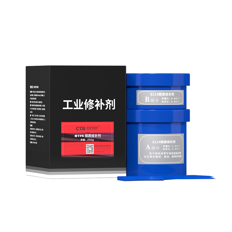 雙組份 ,黃銅色,膠泥狀、室溫固化適用于銅件氣孔、縮孔、砂眼、裂紋等鑄造缺陷及其磨損、劃傷的、尺寸超差的修復以銅為填充劑,修補后顏色與銅鑄件基本一致耐磨、耐腐蝕、耐老化、防水、 固化后硬度高、無收縮可進行各類機械加工