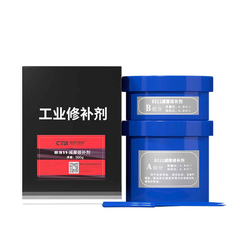 雙組分,膠泥狀黑色,抗壓強度高、沖擊韌性好。用于機床導軌、軸套、活塞、液壓缸、軸承支撐面等零件的磨損修復。